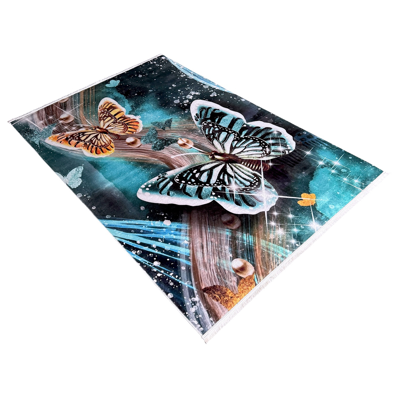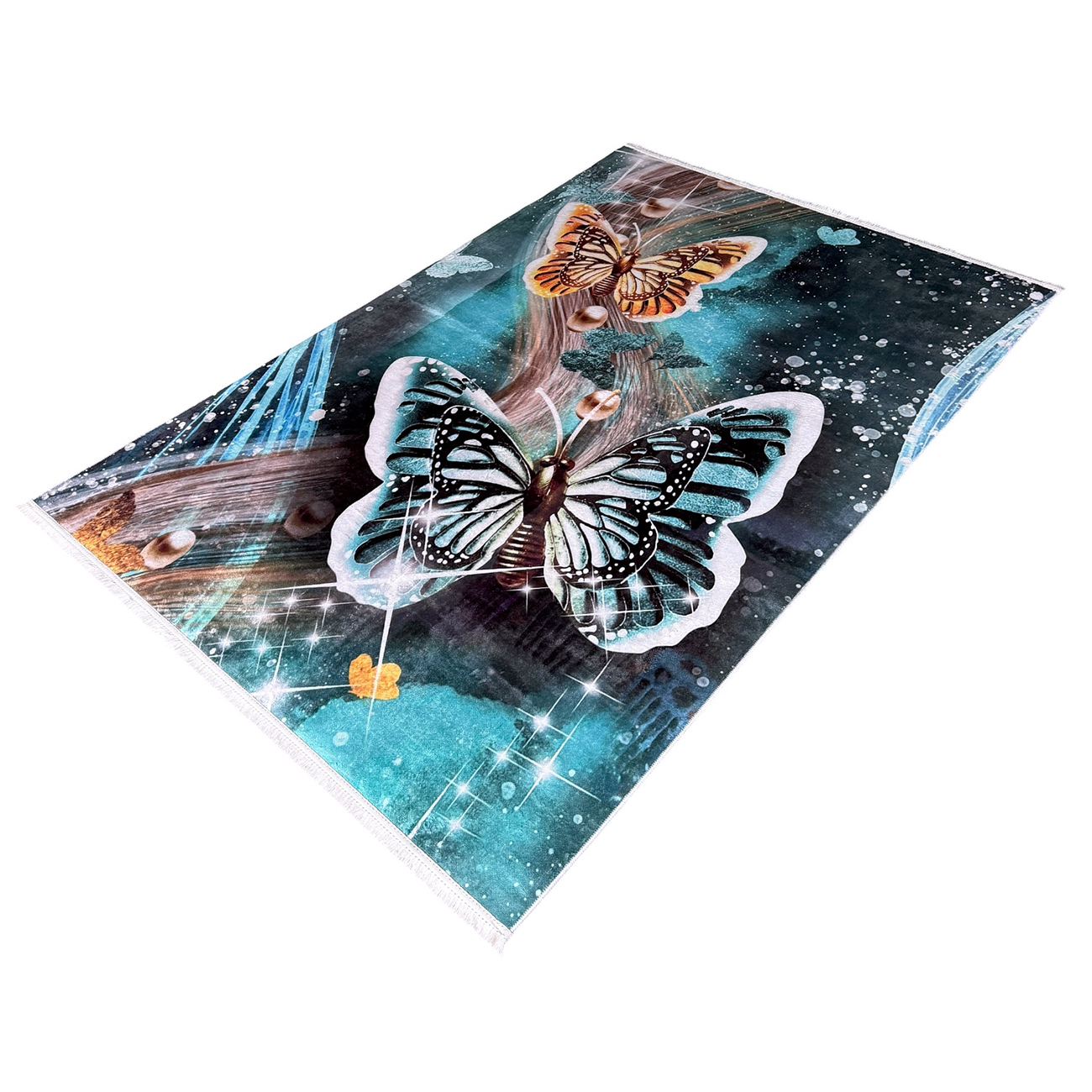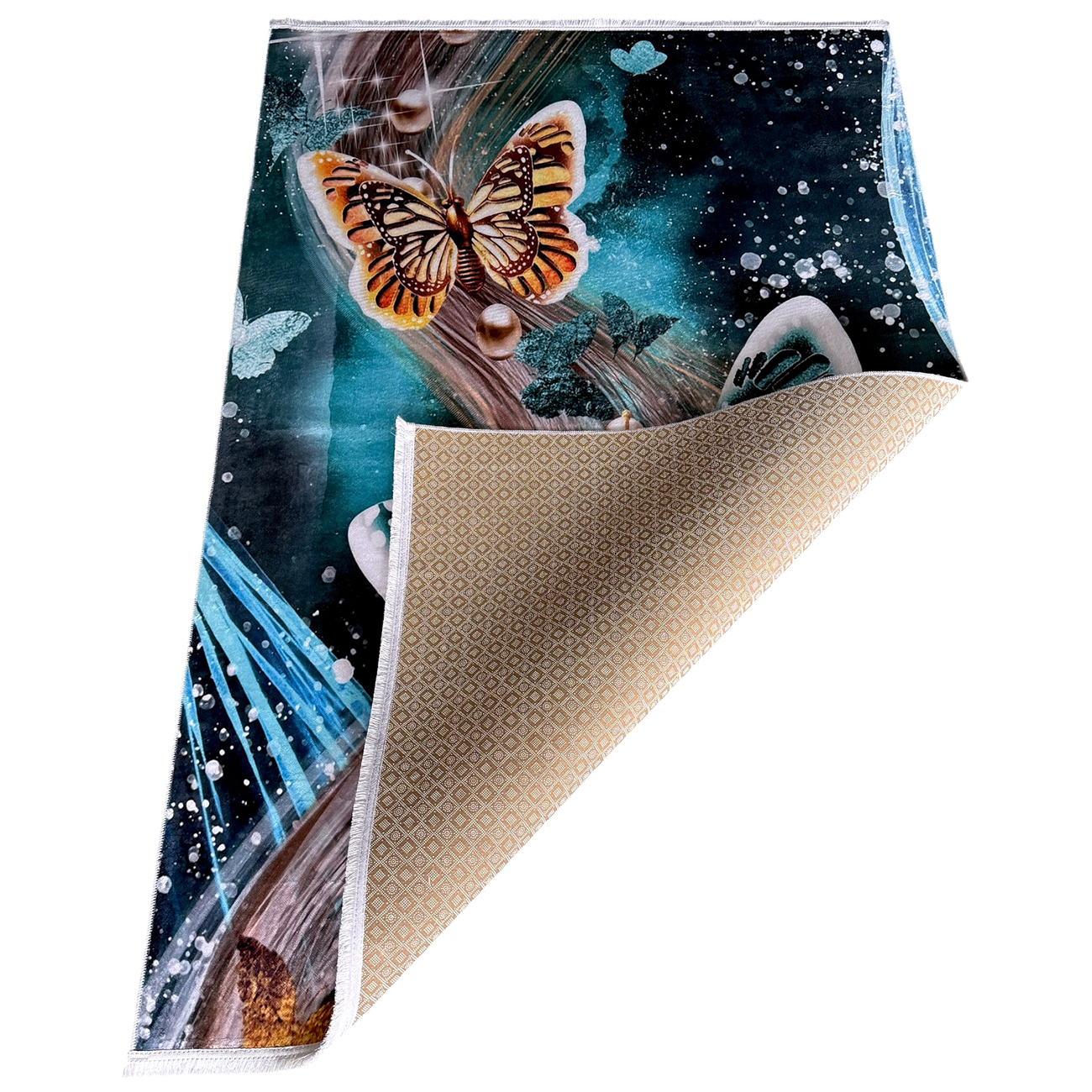 inbazaar Covor cameră antiderapant, Model Fluturi Turcoaz, mai multe dimensiuni