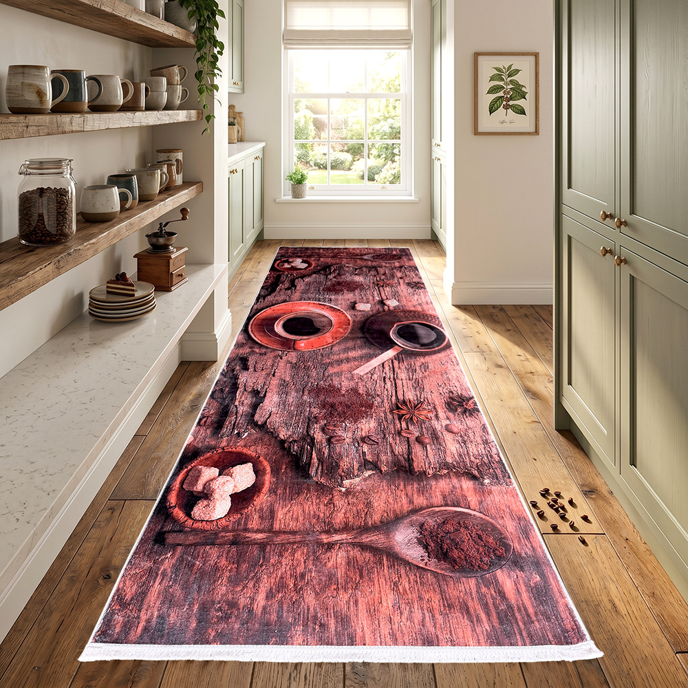 inbazaar Traversă bucătărie antiderapantă, 80x300 cm, model Coffee Time Rustic, TRB1252