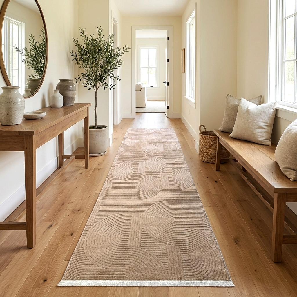 Este potrivită pentru holuri lungi, camere sau zone intens circulate, contribuind atât la protejarea pardoselii, cât și la crearea unei atmosfere moderne și primitoare.