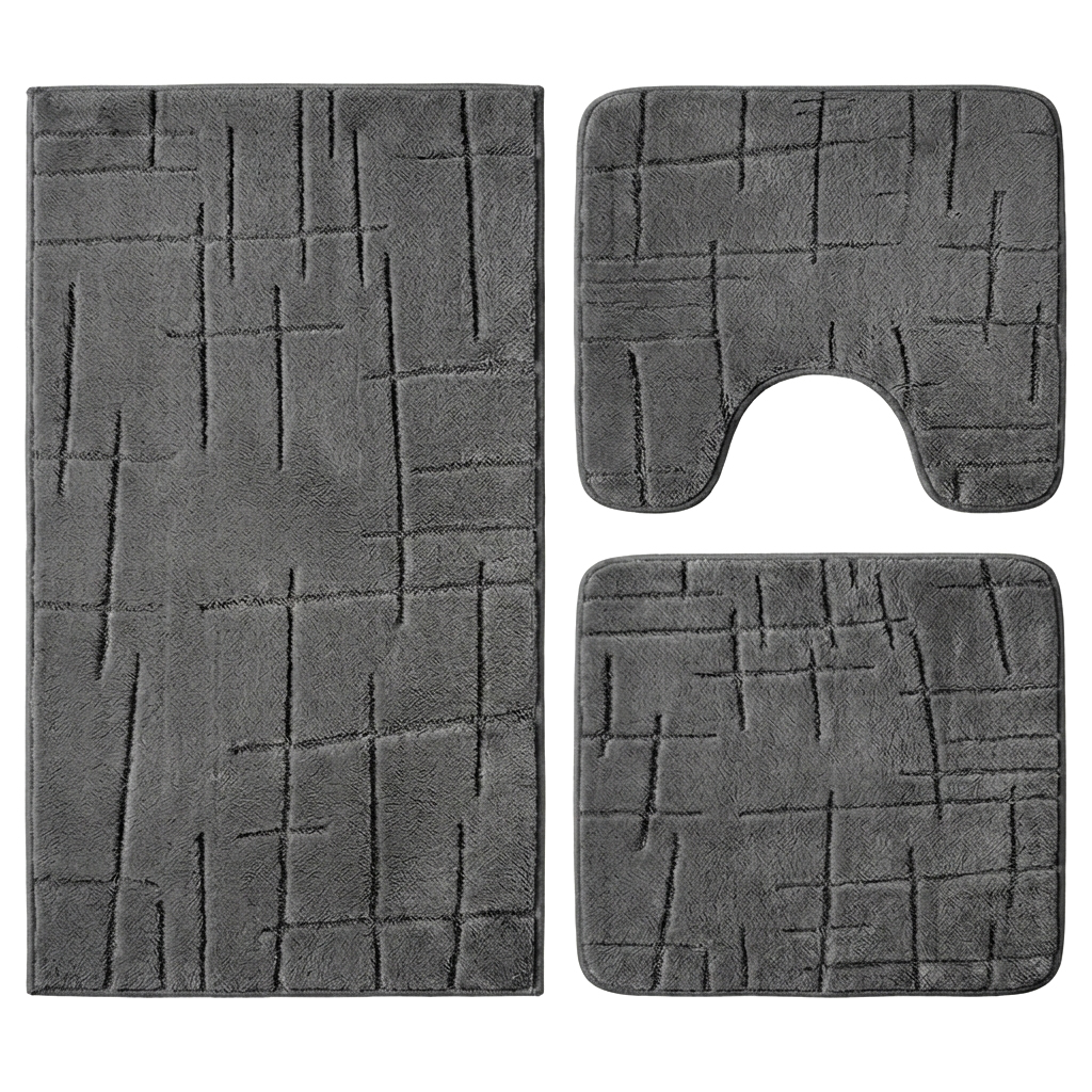 Adaugă confort, siguranță și un plus de eleganță modernă băii tale cu acest set de 3 covoare de baie antiderapante, în culoare antracit, cu design crestat. Modelul texturat, cu linii discrete, creează un aspect sofisticat și contemporan, ideal pentru băi moderne, industriale sau minimaliste.