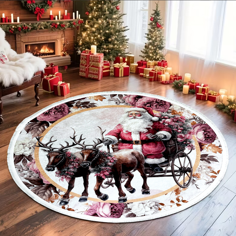 Covor decorativ rotund, antiderapant, tematică de Crăciun, diametru 100 cm