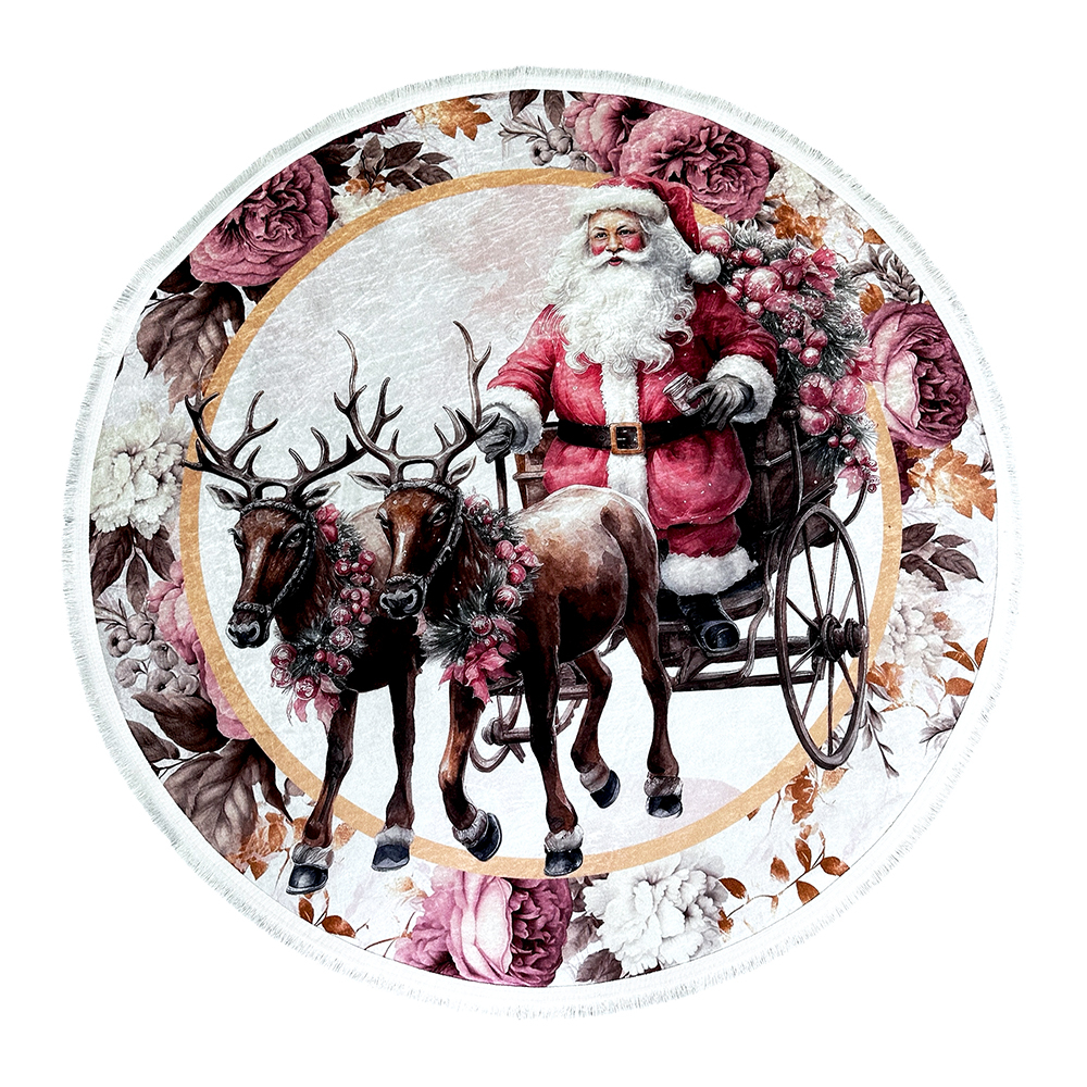 inbazaar Covor decorativ Crăciun, rotund, antiderapant, diametru 100 cm, CCR105