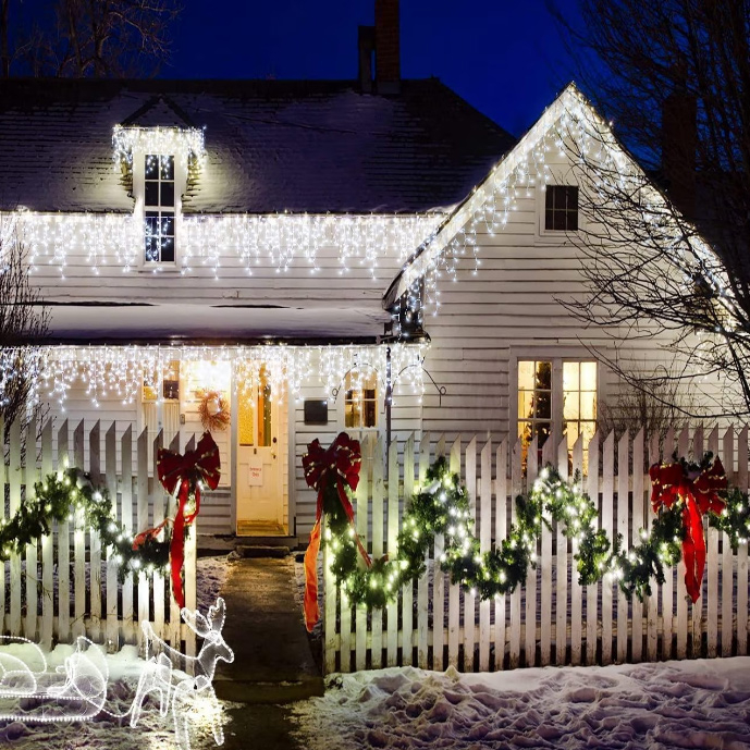 Instalație de Crăciun, cu franjuri cu flash, inegali, cu fir gros, cu led-uri tip țurțuri, interconectabilă, pentru exterior și interior