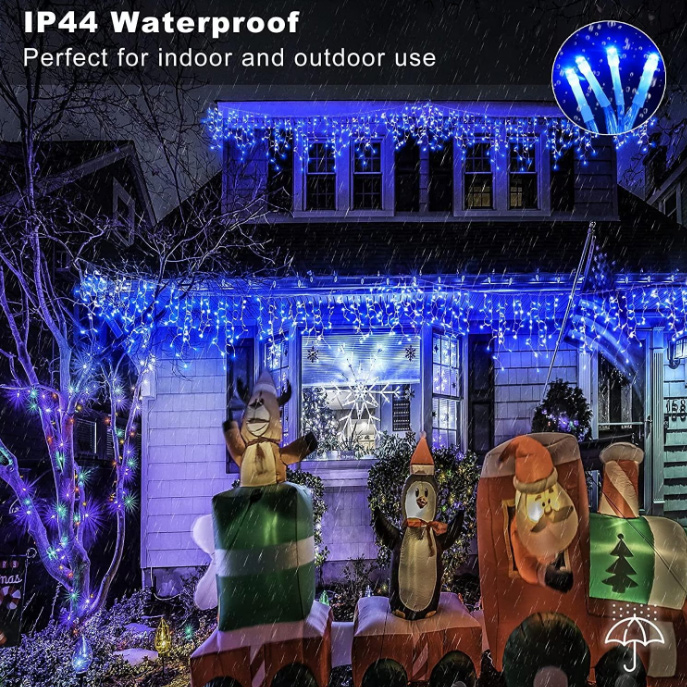 Instalație de Crăciun, cu franjuri cu flash, inegali, cu fir gros, cu led-uri tip țurțuri, interconectabilă, pentru exterior și interior