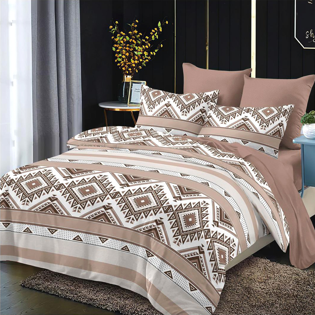 Creează un ambient cald și sofisticat în dormitor cu lenjeria de pat SP1053 din bumbac finet, un set complet de 6 piese, ideal pentru paturi matrimoniale. Designul geometric cu influențe etnice, realizat în nuanțe armonioase de bej, maro și crem, adaugă personalitate și echilibru vizual spațiului de odihnă.