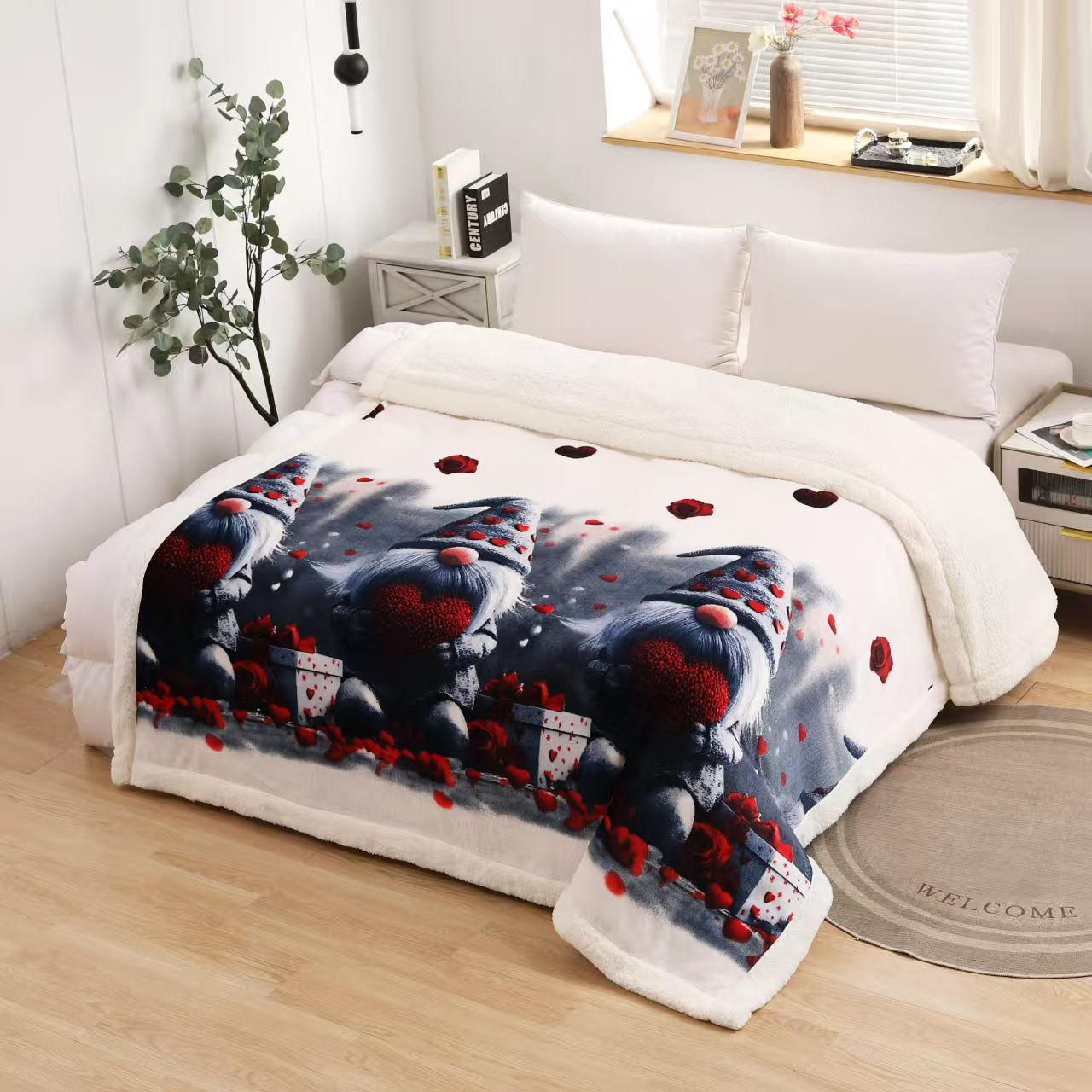 inbazaar Patură pufoasă cu blăniță, Crăciun, 2 fețe, 200x230 cm, 2 kg, PC25