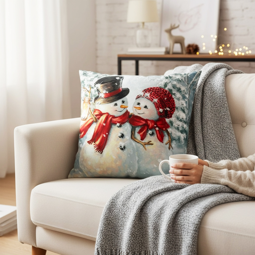 Realizată din material textil moale, plăcut la atingere, perna este perfectă pentru a fi așezată pe canapea, fotoliu sau pat, aducând un accent cald și elegant în decorul de Crăciun. Imprimeul digital redă fidel textura picturală, iar culorile bogate – roșu, auriu și verde – creează o atmosferă cozy și festivă.