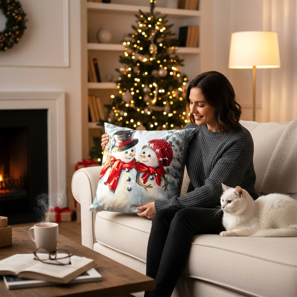 Această pernă decorativă de Crăciun 40×40 cm surprinde un moment emoționant și plin de căldură: Moș Crăciun ținând cu blândețe o pisicuță albă. Imaginea, realizată cu detalii fine și culori vibrante, transmite spiritul sărbătorilor – liniște, bunătate și bucuria lucrurilor simple.