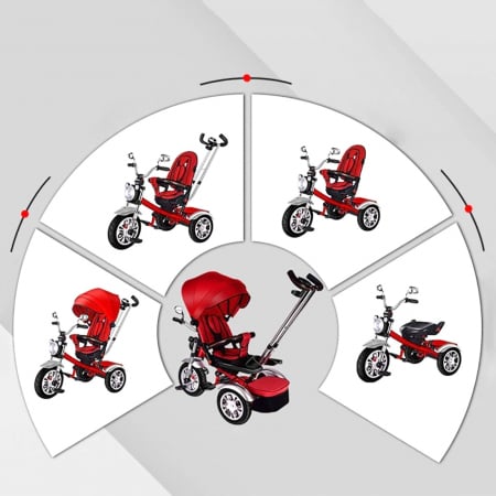 Experimentează plăcerea neegalată a călătoriilor cu această tricicletă! Concepută pentru a oferi o experiență excepțională, această tricicletă dispune de o poziție de somn reglabilă, un scaun rotativ și roti de cauciuc durabile. Indiferent dacă explorezi străzile orașului sau parcurile însorite, acest vehicul îți garantează că fiecare călătorie va fi plină de confort și siguranță. Plierea tricicletei este simplu de făcut, rezultând un produs de mici dimensiuni, compact, ce poate fi transportat în portbagajul oricărei mașini.