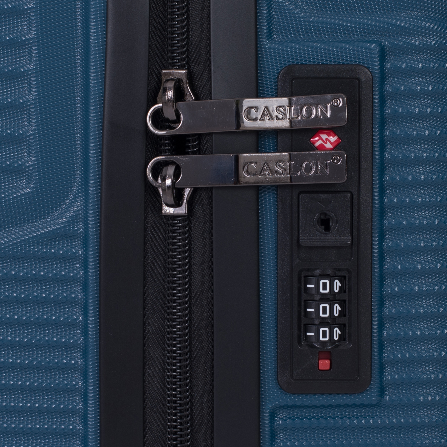 Sistemul de închidere cu fermoar și cifru oferă un plus de siguranță în timpul călătoriilor.