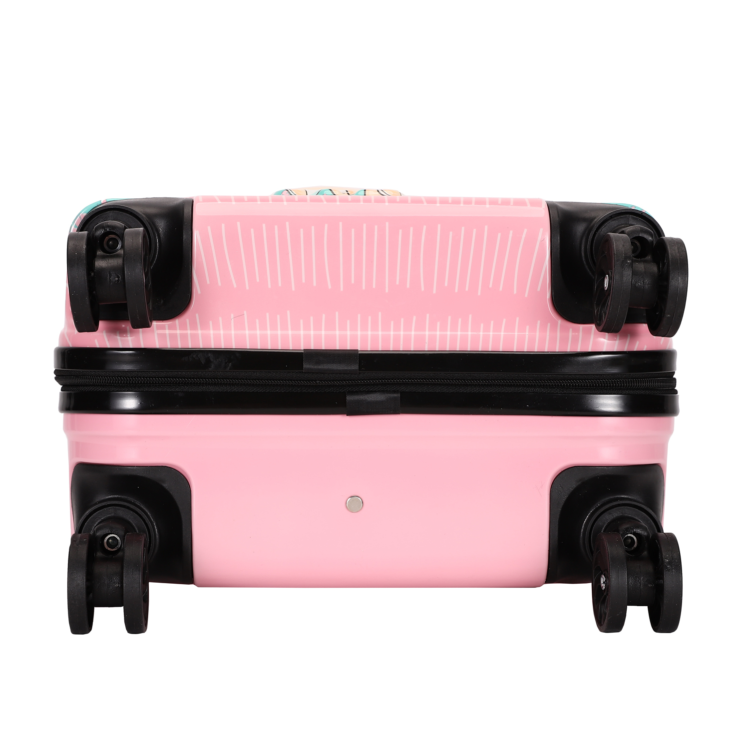 inbazaar Troler copii 43x35x23 cm, 4 roți, ABS + Policarbonat, model Girafă 3D roz