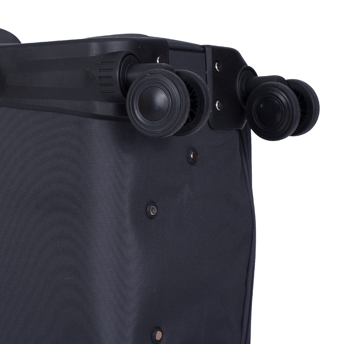Fabricată din poliester 100% cu înveliș PVC rezistent, valiza asigură durabilitate ridicată, protecție eficientă a bagajelor și greutate redusă. Sistemul cu 4 roți pivotante la 360° permite deplasare ușoară și stabilă în aeroport sau hotel, iar mânerul telescopic reglabil oferă confort în utilizare.